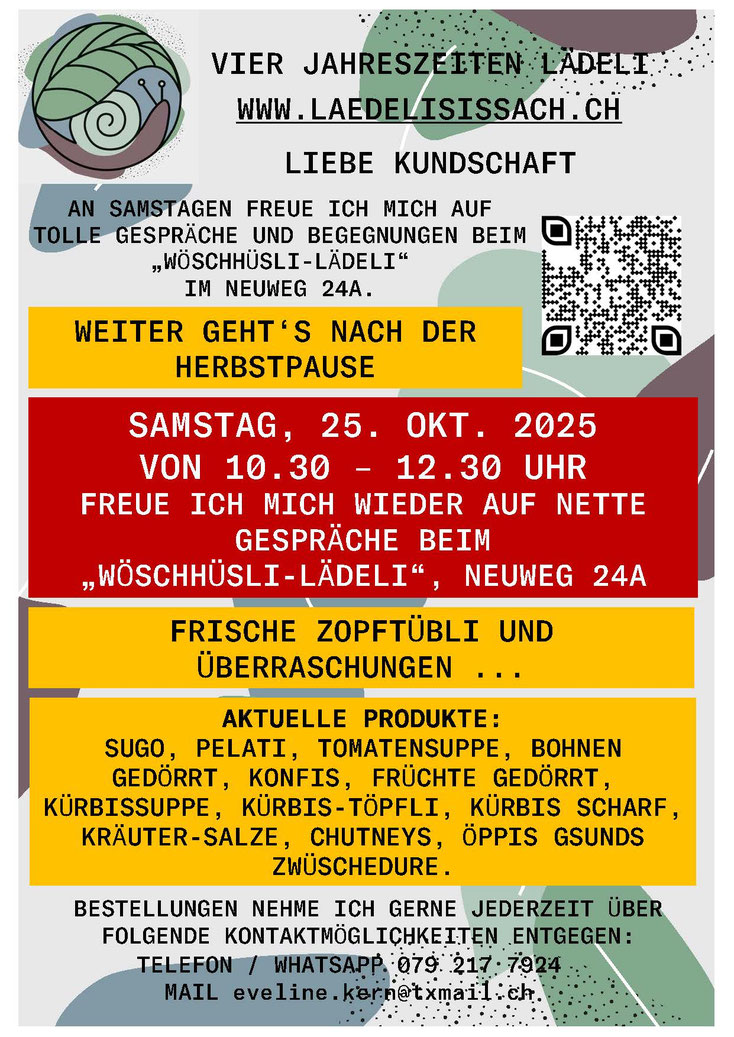 Bestellungen nehme ich gerne auch jederzeit telefonisch (079 217 79 24) und per Mail (eveline.kern@vtxmail.ch) entgegen.